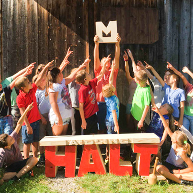 Kinder und Jugendliche erlernen bei der „gelebten Schnitzkunst“ das Schnitzen und erschaffen zusammen etwas für die Gemeinschaft.